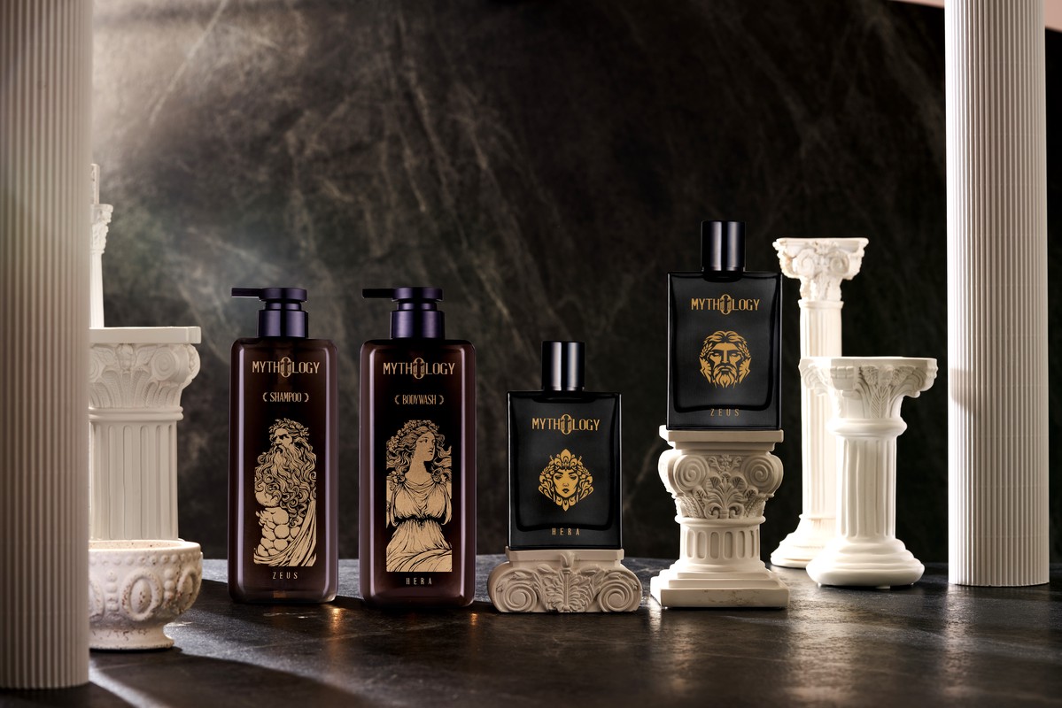 MYTHOLOGY 將希臘神話角色轉化為香氛語言,提出「氣味人格」概念。首波推出「宙斯」與「赫拉」系列:宙斯以東方木質調呈現沉穩力量,赫拉則以花香與琥珀調詮釋優雅柔和。