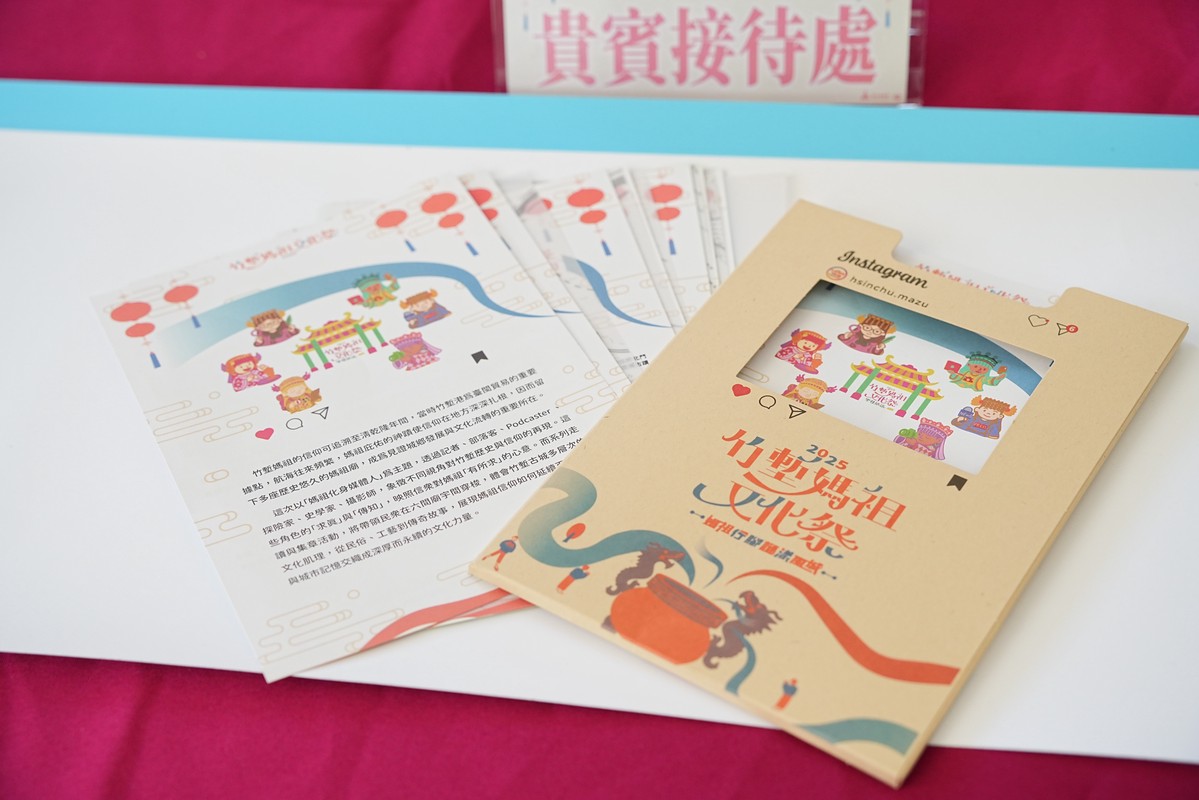 民政處長施淑婷表示,今年文化祭規劃了兩大精采主軸活動,展現出傳統與創新的融合。其中「慈母手中 塹旅情」以套色明信片集章為引導,結合四大媽祖廟的串聯讓文化透過美學轉譯,集章完成還可以寄出自己的明信片做二次行銷;「聖母放送ON AIR」更結合摺頁推出六大媽祖角色卡,除了更加奠定竹塹媽祖的品牌形象,更讓大家可以穿梭六大媽祖廟蒐集任兩個角色即可兌換特色宣導品,活動不僅讓參與者更深入了解媽祖的不同面貌,也以趣味互動的形式,讓文化推廣更加貼近年輕世代。