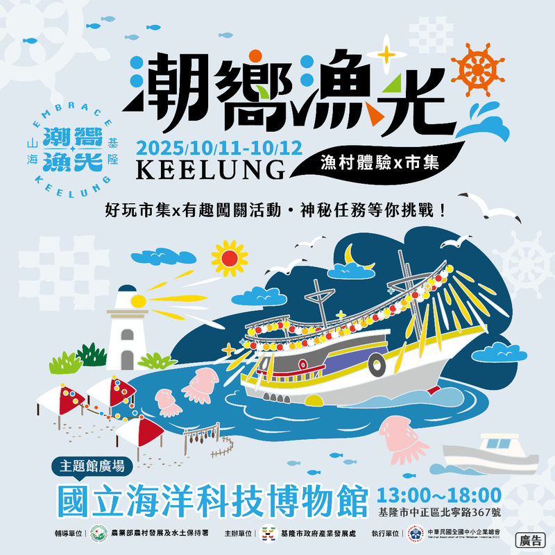 「基隆潮嚮.漁光市集」將於 10 月 11 日(六)至 10 月 12 日(日)在國立海洋科技博物館盛大登場!