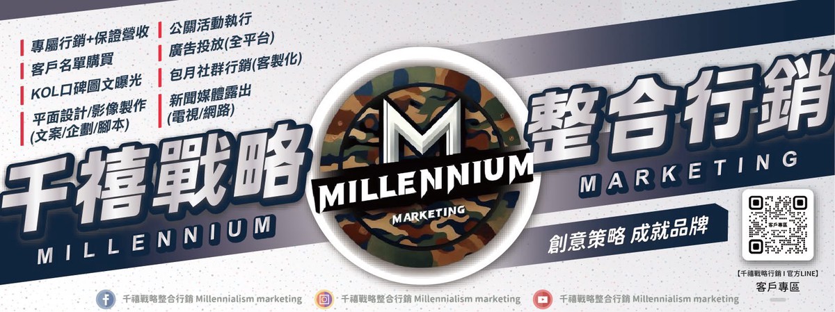 千禧戰略整合行銷有限公司 成立於2011年,總部位於台北。服務涵蓋數位行銷、社群經營、活動公關、媒體關係、KOL配對與影音製作,擁有逾 18 年行銷經驗,並累計服務超過 1,000 個以上客戶品牌。憑藉娛樂級現場製作、短影音內容與數位策略並重的特色,千禧戰略行銷致力於協助品牌創造最大化的市場影響力。圖片提供:千禧戰略整合行銷