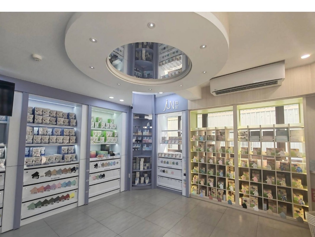 全新推出的體驗門市採用現代化裝潢設計,口罩展示牆完整陳列「郡昱JunYu」與副品牌「悠然 The Unique Life」口罩,超過200種花色款式,從嫩嬰、兒童、青少年、成人到長者各種版型、平面到立體、日常防護到透氣舒適、妝容友善、高端質感等各種系列應有盡有。