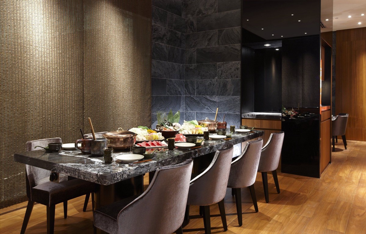 料理方面,以神戶和牛肋眼、澳洲和牛、伊比利豬及雲林黑臻豚為主角,並搭配北海道毛蟹、鱈場蟹與澎湖現流漁獲,超過八成食材皆為日本生食等級。特製的日式豚骨昆布湯,結合鹼性還原水與鰹節、昆布,湯底清甜襯托食材原味。沾醬則以柚子果醋與胡麻醬展現細緻巧思,完美搭配肉品與蔬食。