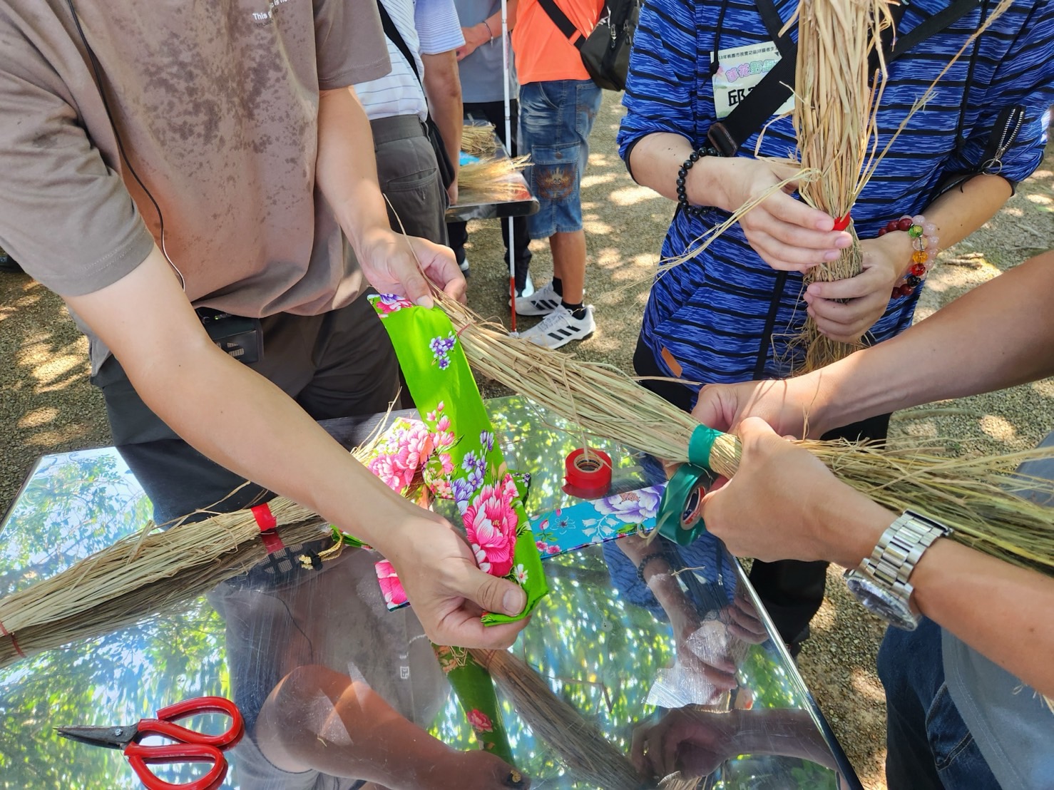 活動當天,三商美福志工熱情陪伴視障學員,細心引導他們完成搥背棒的製作,並一同參與搭乘「大王蓮花」的特色體驗。透過傾聽自然的聲音與感受平衡的挑戰,讓學員們以另一種方式「看見」世界的精彩。