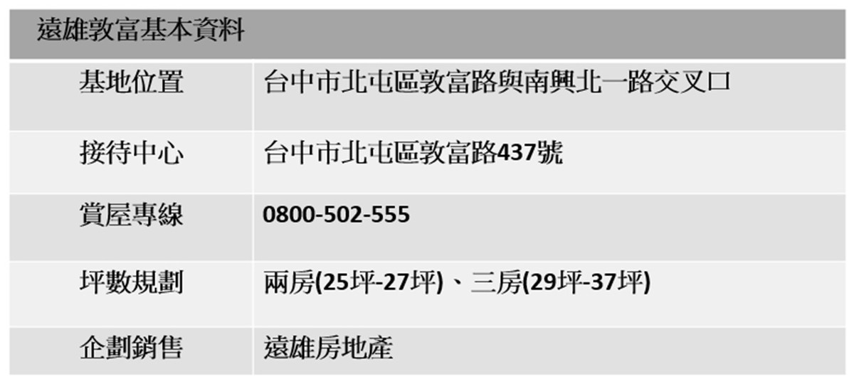 據悉遠雄已計畫深耕機捷特區在第四季推出第二案,遠雄認為在近期民眾購屋更加審慎,上市品牌建商是民眾購屋首選,機捷特區首發案「遠雄敦富」又同時具備三面臨路1311坪大基地的稀缺性、25~37坪2~3房務實格局,與長期保值潛力等特色,才能成功承接北屯十四期、水湳的外溢買氣。「遠雄敦富」現階段主打高樓層、大棟距、面公園2房2衛,客餐廳、主、次臥三個空間都擁有採光面,是市場少有的「旗艦版2房」,格局順應家庭人口結構單純化趨勢,強化公領域機能,突破過往市場2房1衛框架,令購屋者眼睛一亮。
