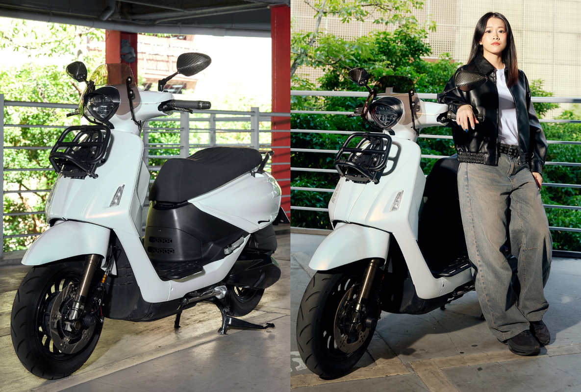 她說:「Fiddle DX 158對我來說,是一台能同時滿足『美感』與『機能』的作品。」她最著迷於那股復古中帶點摩登的調性——車身線條圓潤、層次分明,搭配飽滿動力與超大置物箱,讓通勤與出遊都能輕鬆自在。