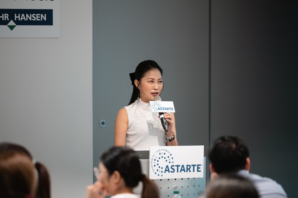 在講座中,兩位專家亦介紹Novonesis (legacy Chr. Hansen) 所開發的「專利複合益生菌 ASTARTE®」,以四株經國際研究支持的乳酸菌組合為基礎,提供品牌客戶應用於女性健康領域的原料參考: