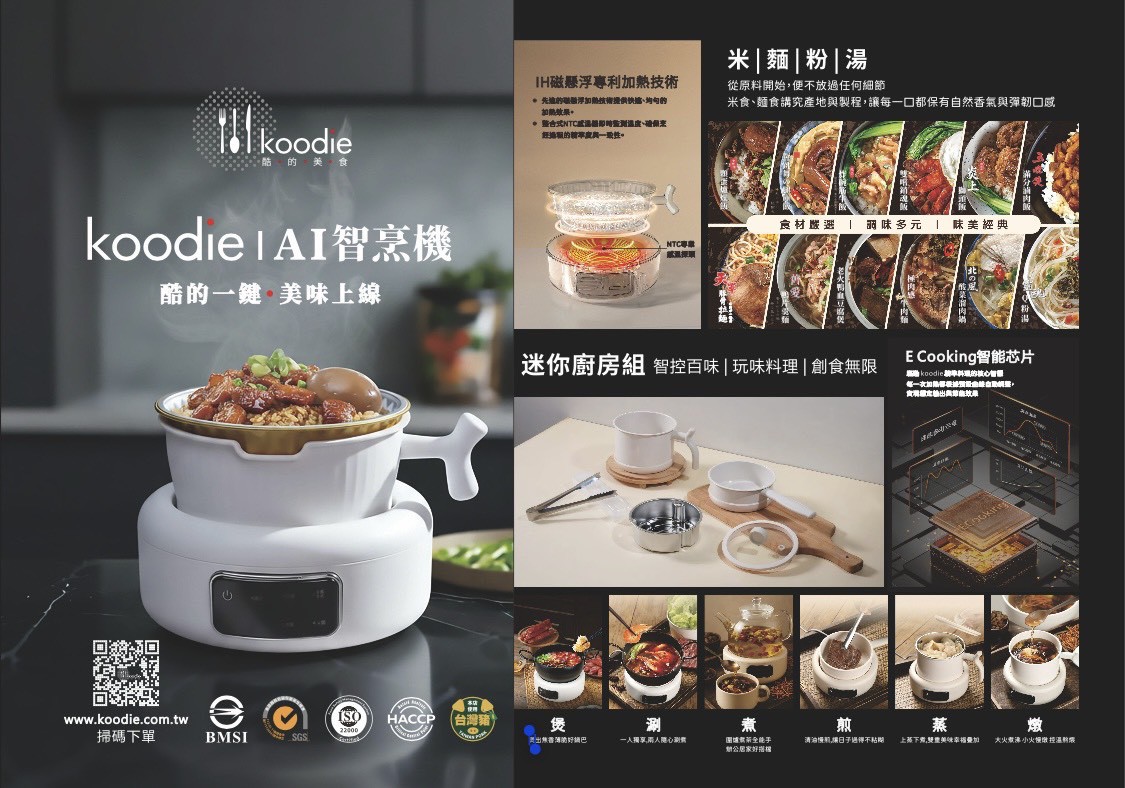 除了強大的科技實力,Koodie也在產品設計上充分展現生活美學。其推出的「Koodie智烹料理12入全餐套組」,嚴選多款風味料理,從家常菜到異國美食,一鍵即可完成全餐享受;再搭配品牌旗下「迷你廚房系列」不鏽鋼珐瑯鍋具組(湯鍋、煎鍋、蒸鍋、玻璃蓋與不鏽鋼夾)、高硼矽茶壺及鐵釜鍋,讓料理與品味兼具。