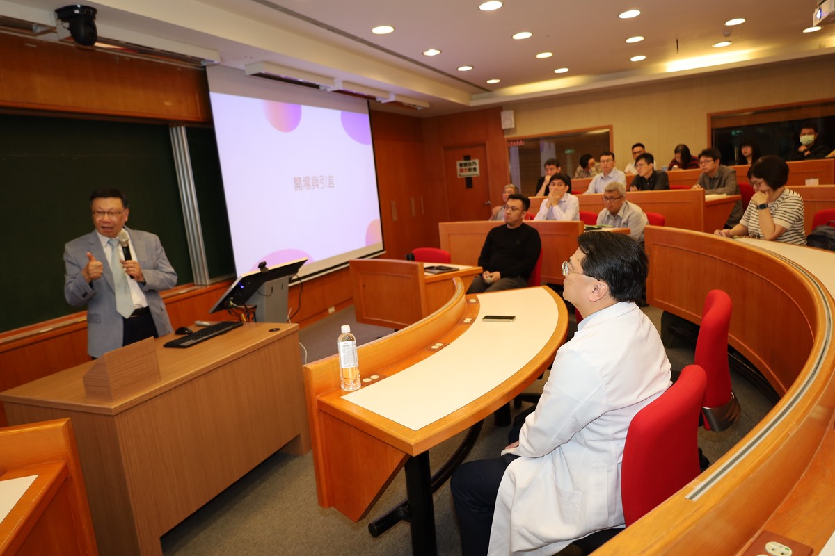 亞大校長蔡進發(左)介紹,「亞大校園暨附屬醫院智慧導覽」系統是國內創舉。(圖/亞洲大學提供)
