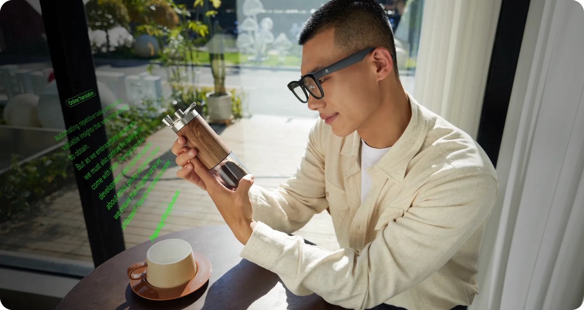 Rokid Glasses 以「未來,從看見開始」為概念,結合即時語音翻譯、AI助理、影像記錄、導航與筆記整理等多項實用功能,主打「雙手自由、眼前完成」的AI生活體驗。這款產品採用 Micro-LED光波導顯示技術,並搭載 Qualcomm AR1 及 NXP RT600 雙晶片架構,在低功耗的前提下仍能支援高效能AI運算。