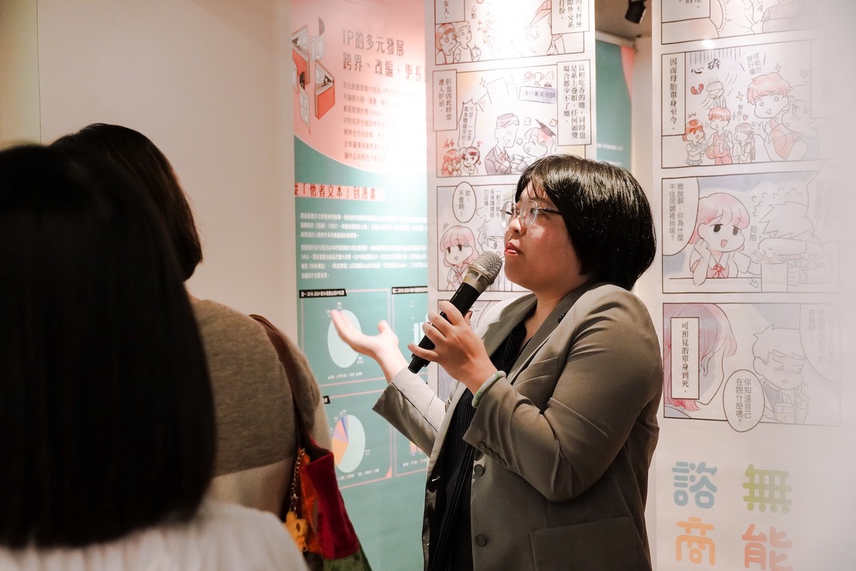 賴萱珮進一步解釋,該次展覽除了以貼近生活的景點及關鍵字介紹臺灣漫畫之外,也系統化地梳理了臺漫近五年「從創作到出版」的過程,涵蓋平台發展、文化部漫畫輔導金的補助、各家出版社每年出版書量等數據統計以及創作者的出道選擇等面向,藉此呈現臺漫興起與蓬勃發展的現況,不僅如此,更是首次列舉出臺灣漫畫外語版權銷售排行榜,以及展出多語版本實體書籍,完整展現臺漫走向國際的成果。