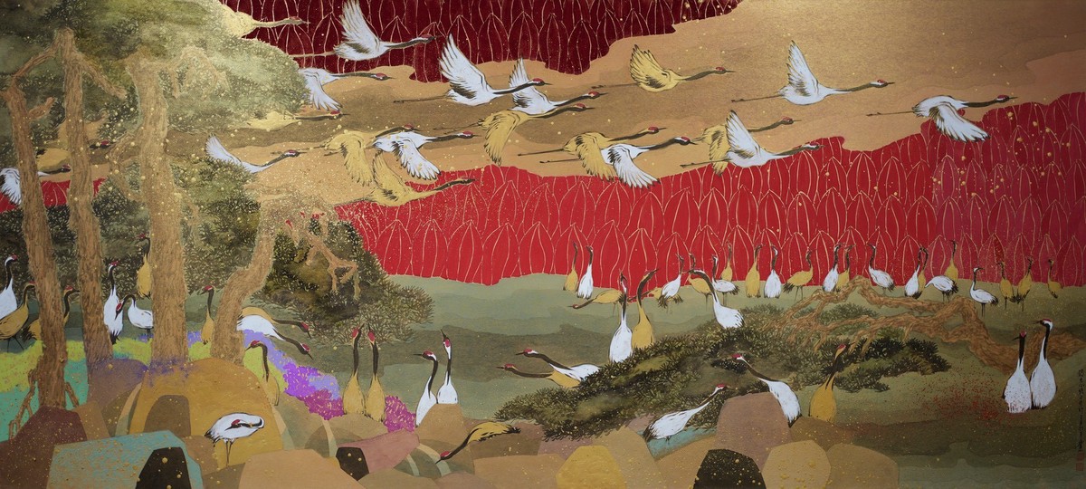 該次展覽以作品《鶴立心懷千里行》為主視覺,象徵遠見、積累與踏實前行的力量,結合「圓山耑宇」新東方空間設計,將文化底蘊和世代相傳的價值融合於建築與空間,提供高端客群獨特、更貼近生活的沉浸藝術體驗,同時呼應「圓山耑宇」公設採用的世界級品牌 SHANGXIA 所展現的當代東方美學,使空間真正呈現藝術即生活的場域精神。
