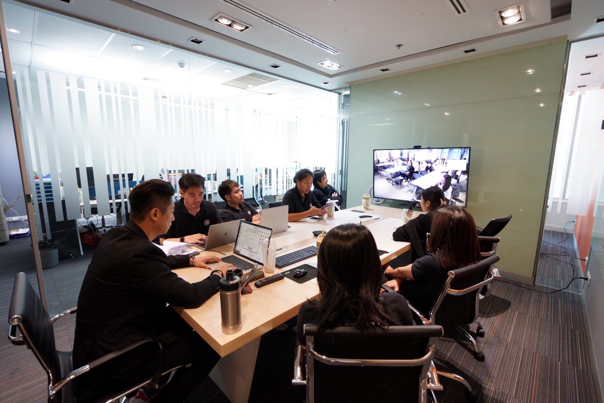 德寶泰國總部和台灣總部連線開會畫面。圖/德寶地產提供