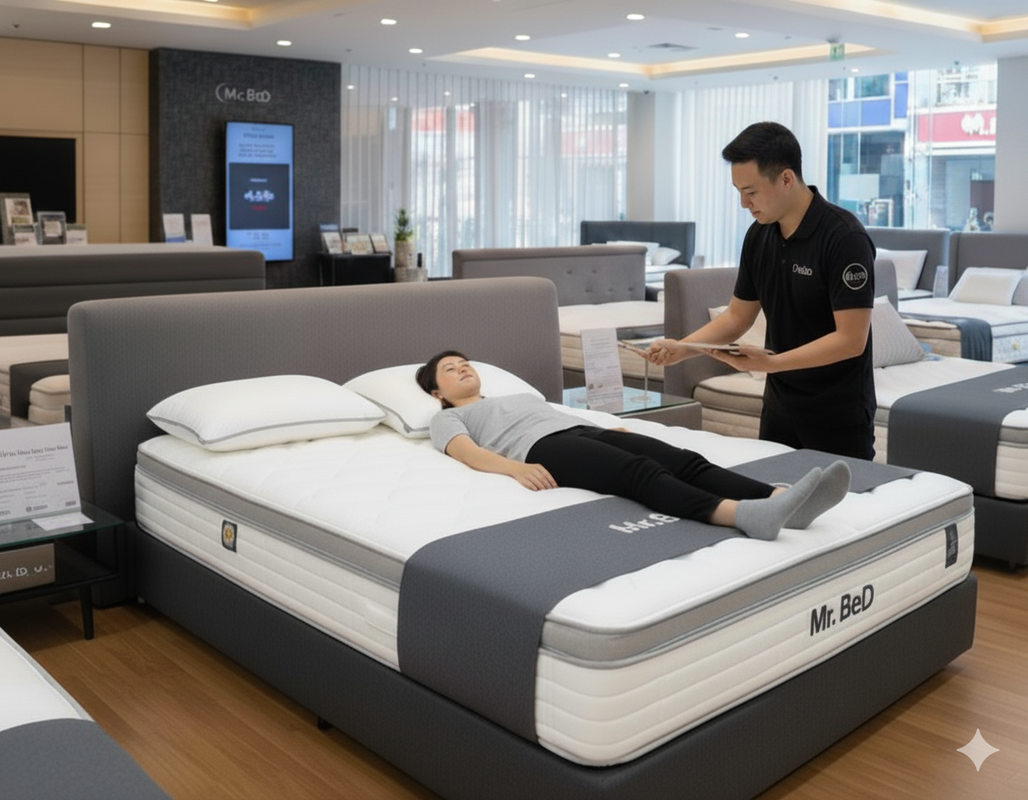 為此,Mr.BeD 於全台門市導入「一對一專業睡眠體驗」。透過「體壓分布檢測」,科學找出身體壓力點,確保床墊的「智慧分區支撐」能為每個身體轉折,提供一個真正被接住的放鬆位置。