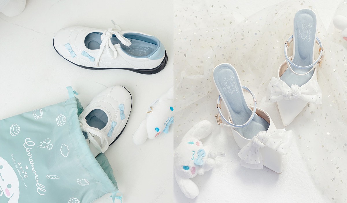 Ann’S × Cinnamoroll 大耳狗喜拿系列,推出三款夢幻鞋履——撞色淺藍德訓鞋、緞帶蝴蝶結休閒鞋、刺繡穆勒鞋。以藍白為主調,融合柔和色系與療癒細節,完美詮釋大耳狗的溫柔可愛氣質。每款鞋兼具舒適與時尚,從可拆式珍珠蝴蝶結、紗網鞋帶到左右腳不同刺繡圖案,處處展現設計巧思。