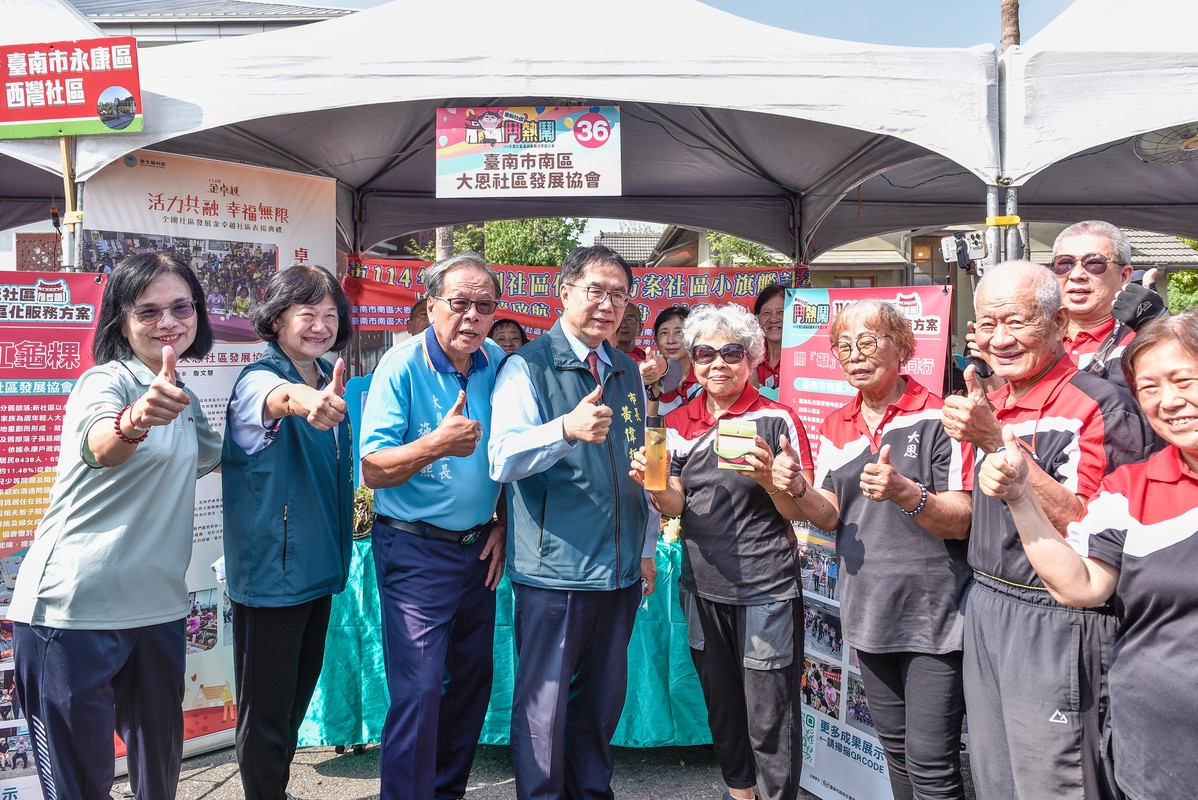 為落實黃偉哲市長推動「社區永續發展」及「福利社區化」的施政願景,臺南市政府社會局於9日上午在水交社文化園區舉辦「社區福利服務成果嘉年華-『來阮社區鬥熱鬧』」活動,現場邀集臺南市各社區發展協會及相關社福團體共同展示社區福利服務成果,並也透過互動體驗活動讓民眾認識及瞭解社區特色、文化與產業發展,黃偉哲市長也在社會局長郭乃文的陪同下,親臨現場與社區夥伴鬥熱鬧,同時親自頒獎給7個榮獲衛生福利部114年度社區發展工作金卓越績優社區,並與社區共同攜手啟動「來阮社區鬥熱鬧」活動序幕,巿議員王家貞、許至椿、沈震東、林美燕、李啟維等人皆親自蒞臨現場與社區同樂,以及立委林俊憲、陳亭妃、議長邱莉莉及市議員林冠維、楊中成、蔡淑惠、盧崑福等服務處代表也出席祝賀。