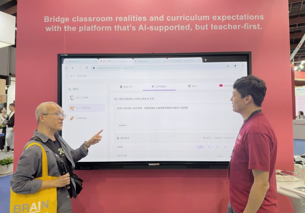 在眾多展出亮點中,由謙懿科技總代理的旗艦產品 Wayground AI 教學平台 成為全場焦點。以「AI 讓理想課堂即時實現」為主軸,Wayground 展示其直覺化操作介面與高效能 AI 引擎,吸引大量教育工作者駐足體驗。教師僅需輸入教學主題或課程目標,即可於數十秒內自動生成教材,內容涵蓋課程架構、練習題與延伸討論,大幅提升教學準備效率。