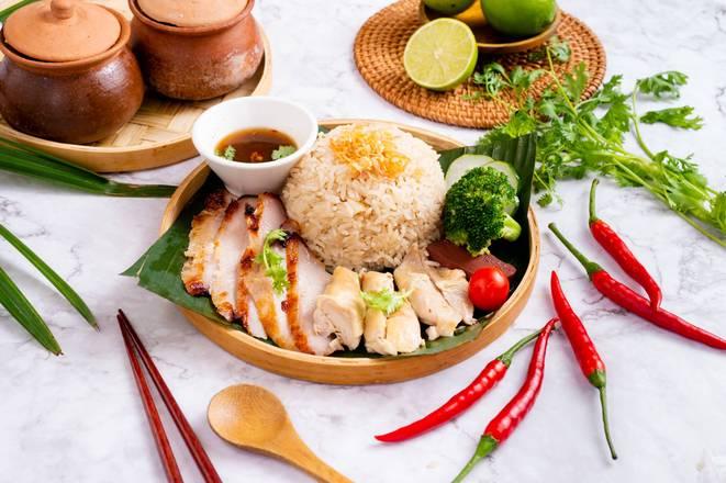 這裡主打的是泰式派系海南雞飯。雞肉口感特別柔嫩,搭配十五種香料調製的泰式醬汁,味道更為香辣有層次。和常見的新加坡或馬來西亞版本相比,少了雞腥味,多了泰式的輕盈與包容。