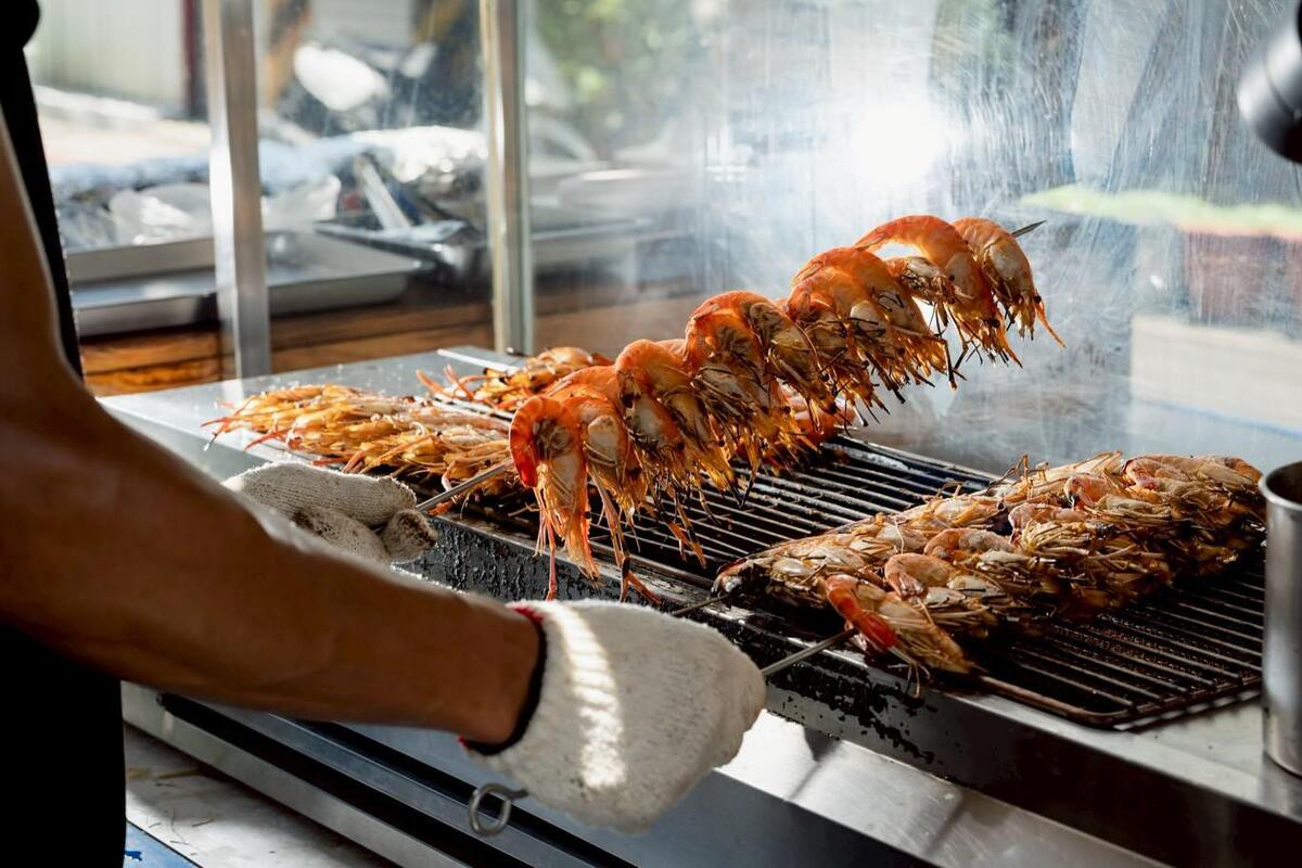 餐車主打快速出餐與經典串燒;實體店則提供更多元的料理選擇,如鹽烤魚與泰國蝦,適合想要完整用餐體驗的客人。