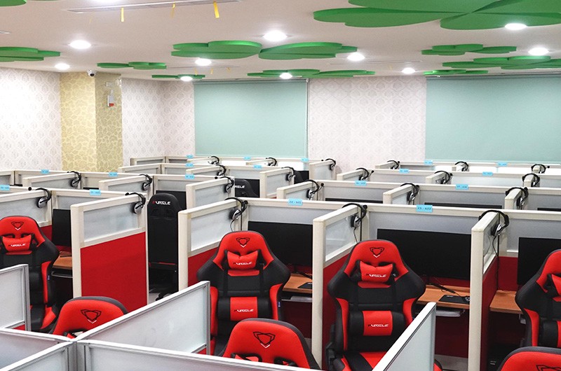 在校區特色方面,戴爾美語台中校更展現創新亮點。其一,打造全台唯一的 Hello Kitty電競考場,以年輕化與科技化結合的設計風格,營造輕鬆且專業的應試氛圍;其二,設有專業聽力與口說圓形視聽設備訓練教室,運用沉浸式教學環境,全面提升學員外語表達能力。
