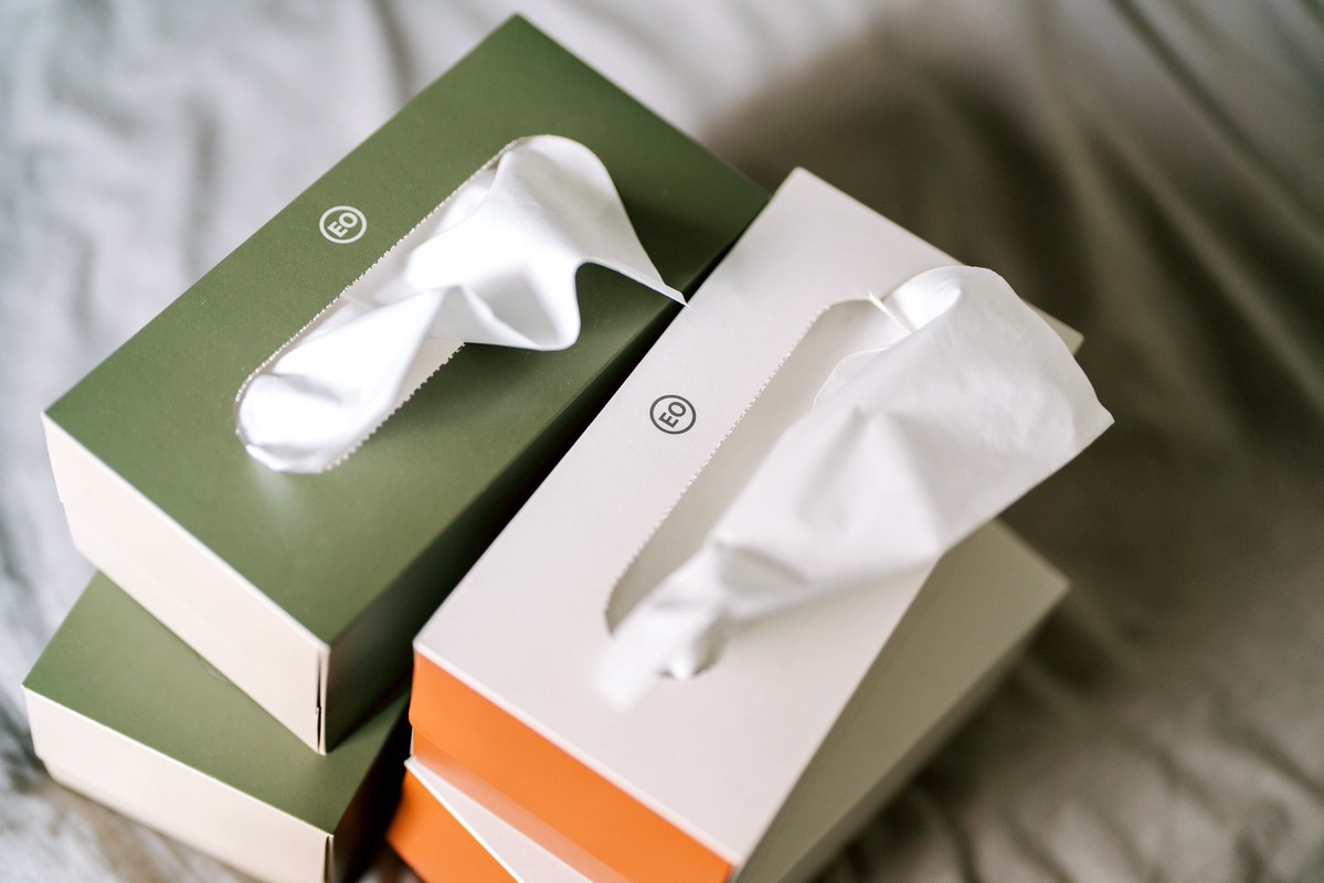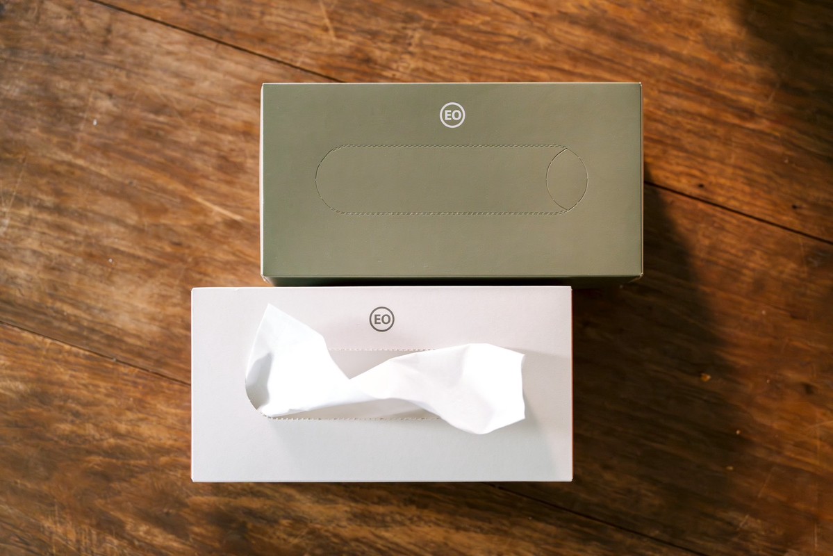 我們都曾有過這樣的經驗:精心佈置了客廳、書房,最後卻總得為了一盒包裝不搭的面紙,多套上一個面紙套。於是從幾年前,EO 就萌生了一個想法:「我們能否擁有一款『不需要使用面紙套』的面紙?」