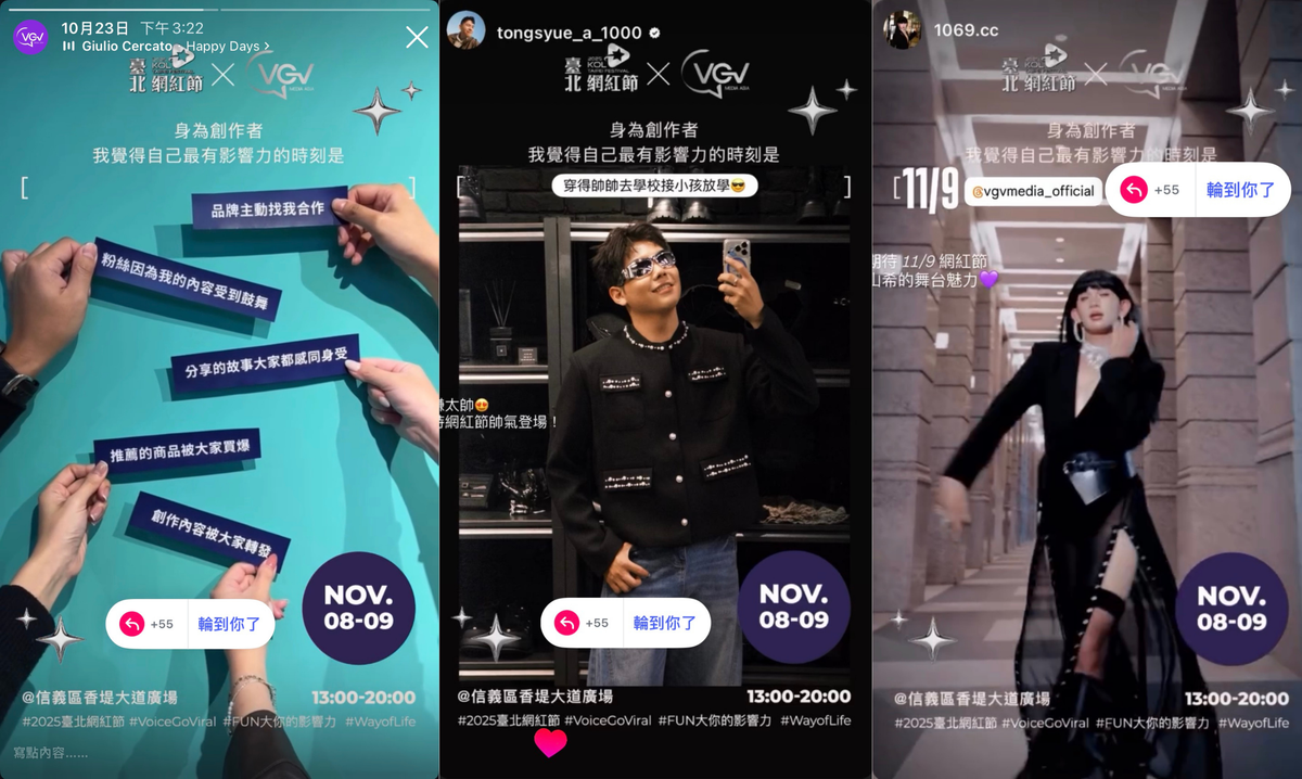 活動還沒開始,社群就先熱起來。一則限動蓋樓主題「我最有影響力的時刻是__」在創作者圈掀起回應潮,延伸出「創作時沒有你,我活不下去⋯」等話題,讓原本沒打算參加的創作者也紛紛加入討論。這波話題不只炒熱氣氛,也成功把活動期待值推到高點,讓線上討論自然導流到線下參與。