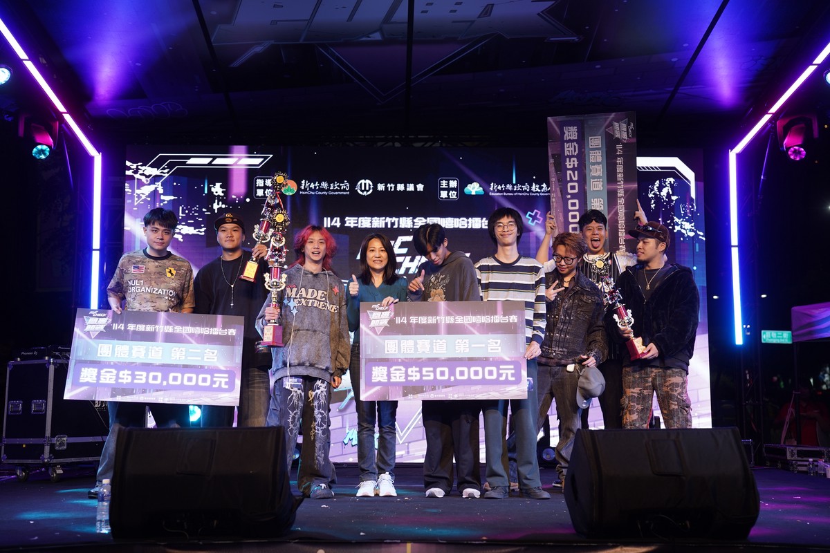 活動圓滿落幕,但青年創作能量不止步。更多活動照片與精彩花絮,將陸續於賽事官網(https://www.hchiphopcontest.com/)及新竹縣政府教育局青年事務科Facebook粉絲專頁(https://reurl.cc/02eVVl)公布,邀請全國民眾一同回顧這場最強聲音的決戰時刻。