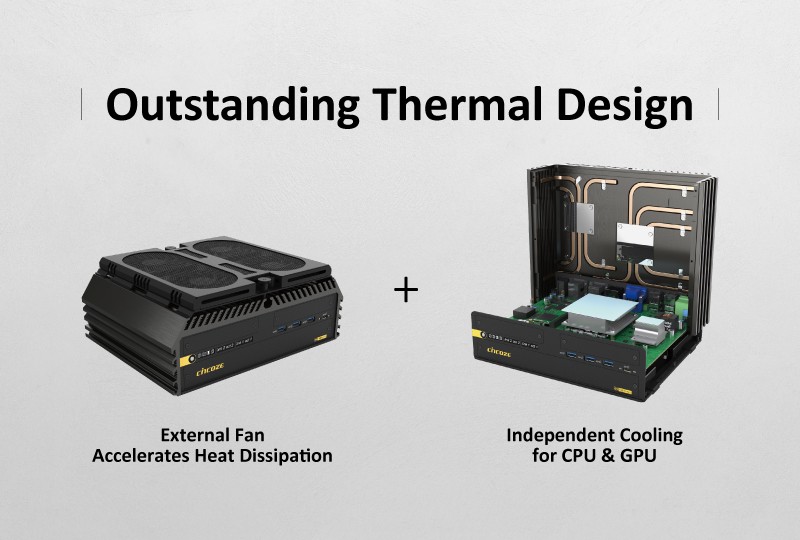 GM-1100專為空間受限環境打造的高效能邊緣AI電腦,體積僅 260 x 200 x 85 mm卻可搭載第14代Intel® Core™處理器與NVIDIA® MXM GPU 模組,兼具強大運算能力與優異圖形處理性能,實現AI邊緣運算的即時決策與高速推論,同時將擴充彈性發揮到極致,能輕鬆滿足多元垂直產業的應用需求,特別適用於交通、製造及軍事等領域。為克服CPU與GPU同時運作所產生的高溫,GM-1100採用分流散熱架構,將兩者熱源分別導向鋁擠外殼的上蓋與側邊,並搭配外部風扇,提升散熱效率,即便在工廠、倉儲、移動設備等嚴苛環境下亦能長時間穩定作業。