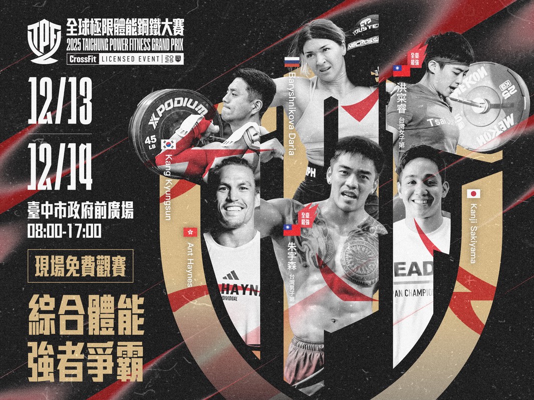 主辦單位說明,本次活動除了欣賞「菁英組」的國際巔峰對決,民眾也能報名「推廣組」親身挑戰;而針對單純想體驗的觀眾,現場亦規劃了民眾體驗區,開放全民預先報名挑戰,無論是健身愛好者、樂齡長輩或親子族群,都能在專業教練指導下安全體驗運動樂趣。此外,現場設有多個運動品牌與健康飲食攤位,民眾只要參與現場周邊活動,就有機會抽中由長榮航空提供的「亞洲、歐洲不限航點來回機票」等多項大獎。邀請全台民眾於12月13、14日齊聚臺中市政府前廣場,親眼見證這場力量與意志的巔峰對決,感受運動帶來的熱血與健康活力。