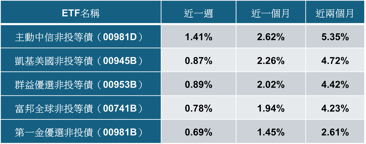 主動式完勝!5檔月配非投等債ETF 近期績效總體檢