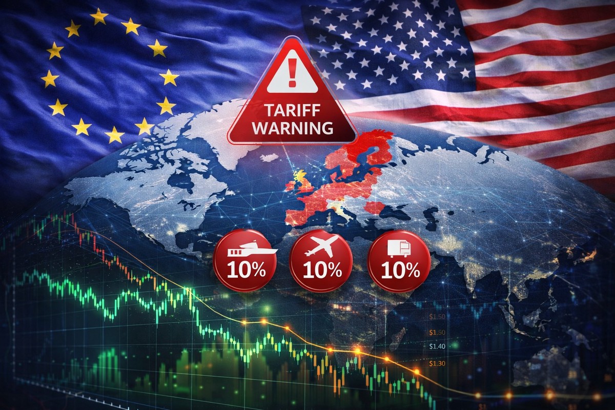 美國總統川普再拋震撼彈,宣布2月1日起、將對丹麥、挪威、瑞典、法國、德國、荷蘭、芬蘭與英國等歐洲八國徵收額外10%進口關稅,直至美國獲准購買格陵蘭為止。根據《路透》報導,此消息立刻引爆國際市場警報,美元兌多數主要貨幣走弱,資金大舉湧向避險資產,包括:日圓與瑞士法郎。